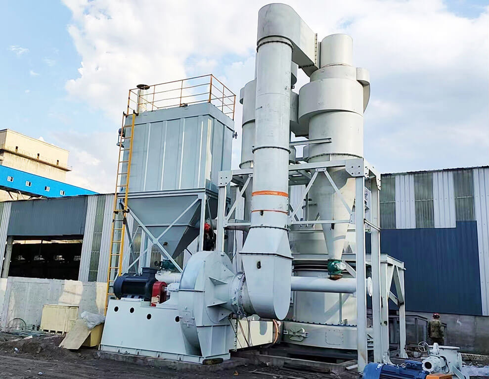 本条石灰石脱硫磨粉生产线流程及配置为: 变频皮带给料机+欧版强力磨YGMQ1800+脉冲除尘器+风机+气体输送设备。脱硫生产线布局合理,设备运行稳定,成品料满足客户脱硫工艺要求,尾气排放满足当地环保要求。客户称获得了超出预期的经济效益,表示对我公司的设备和服务非常满意,后续准备再追加两条生产线。